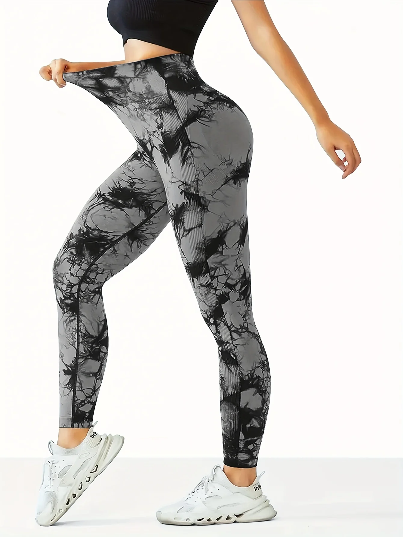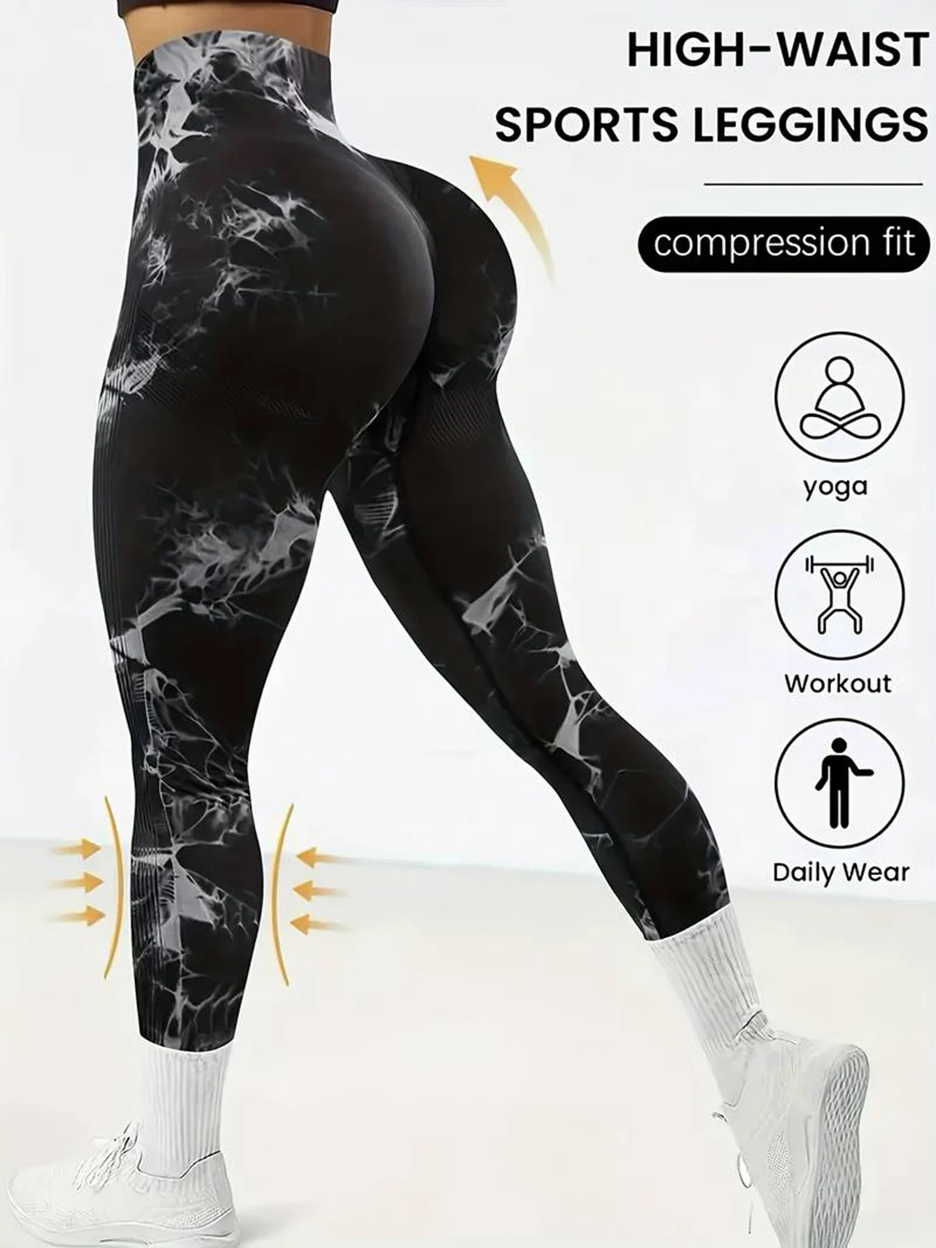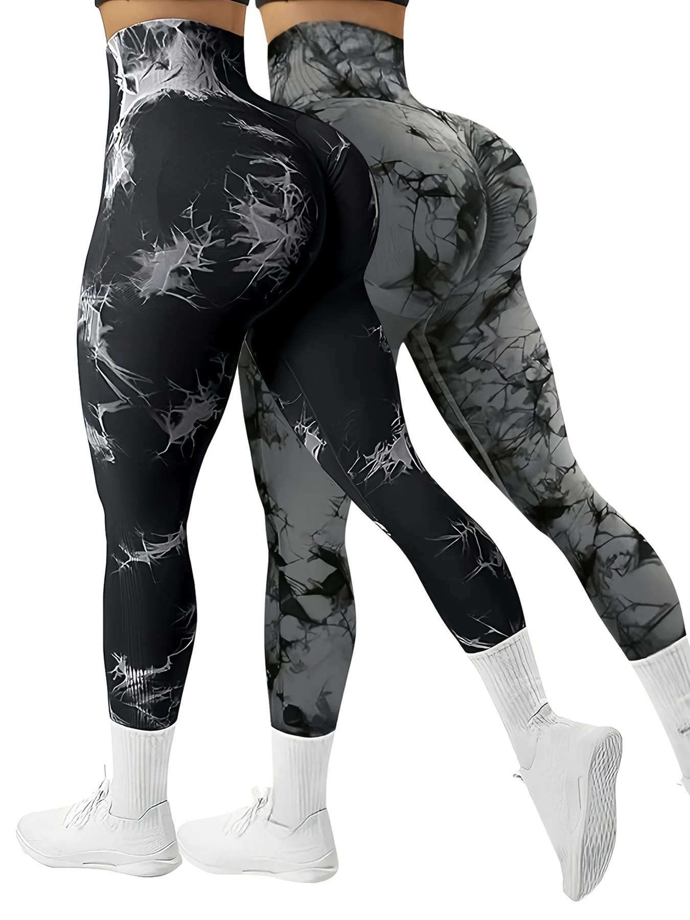 2PCS tie dye seamless women's high waisted yoga pants tight waist and hip lifting elastic wide waist sports leggings
