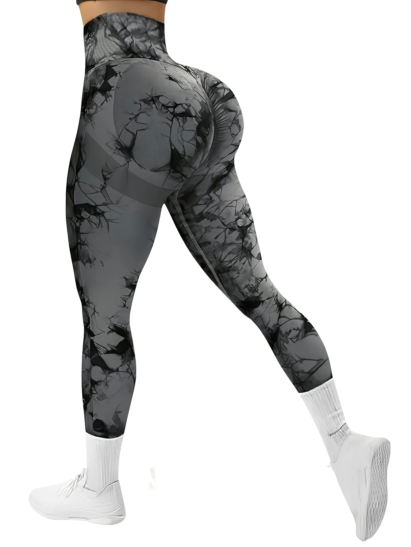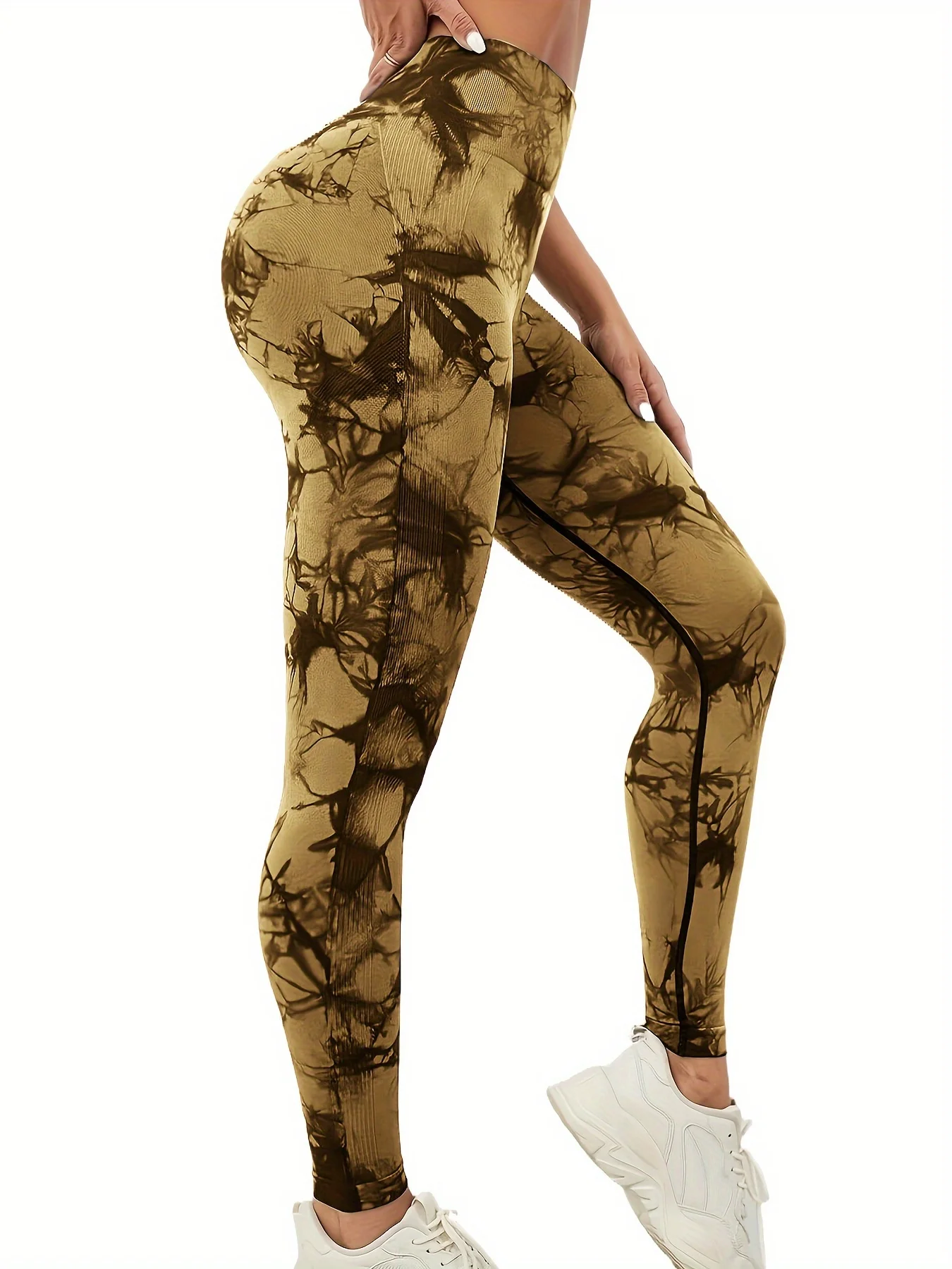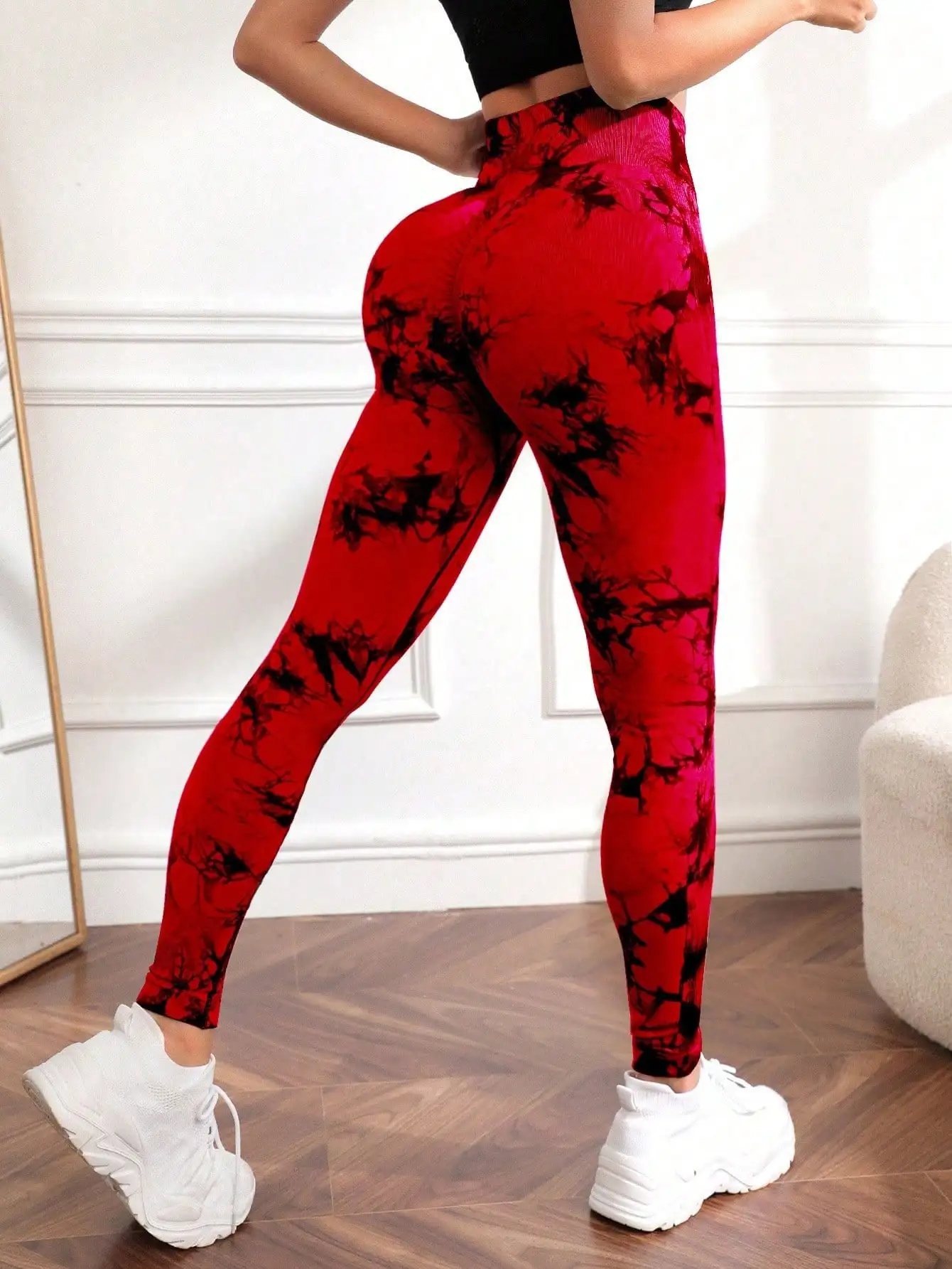 2PCS tie dye seamless women's high waisted yoga pants tight waist and hip lifting elastic wide waist sports leggings