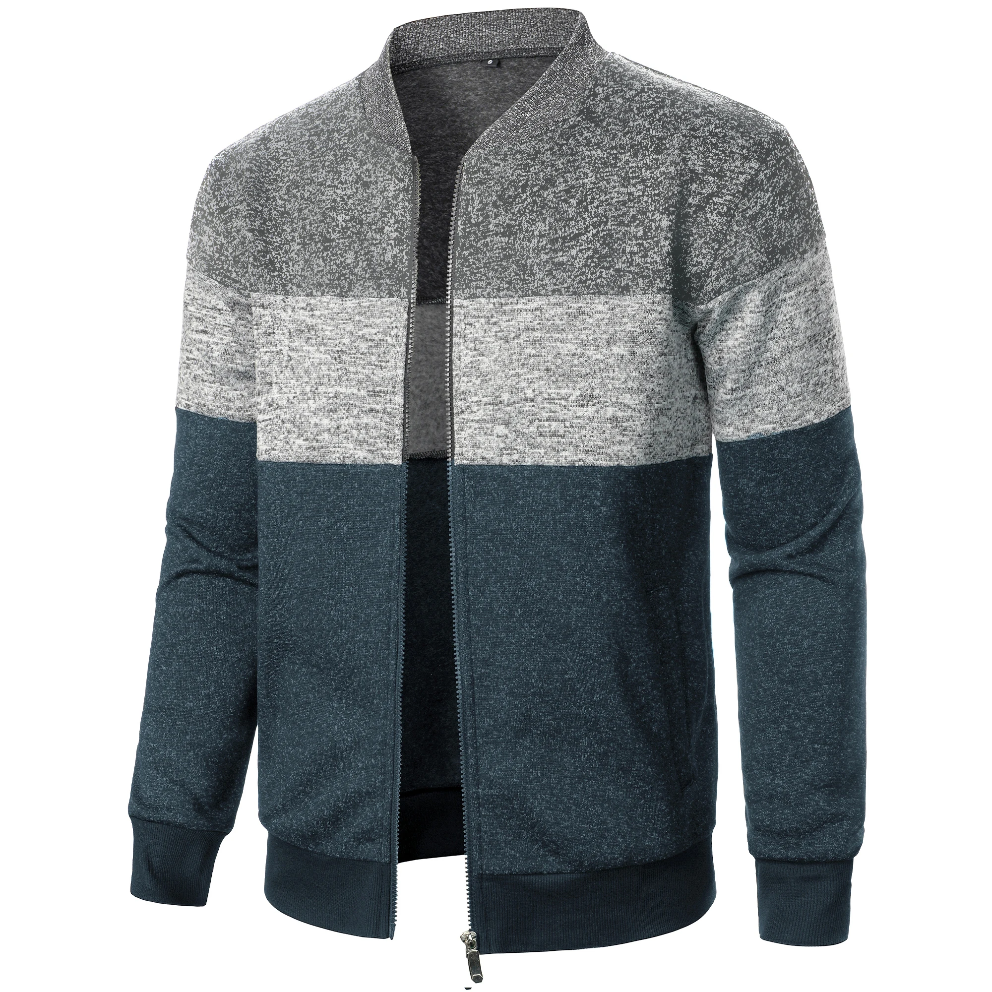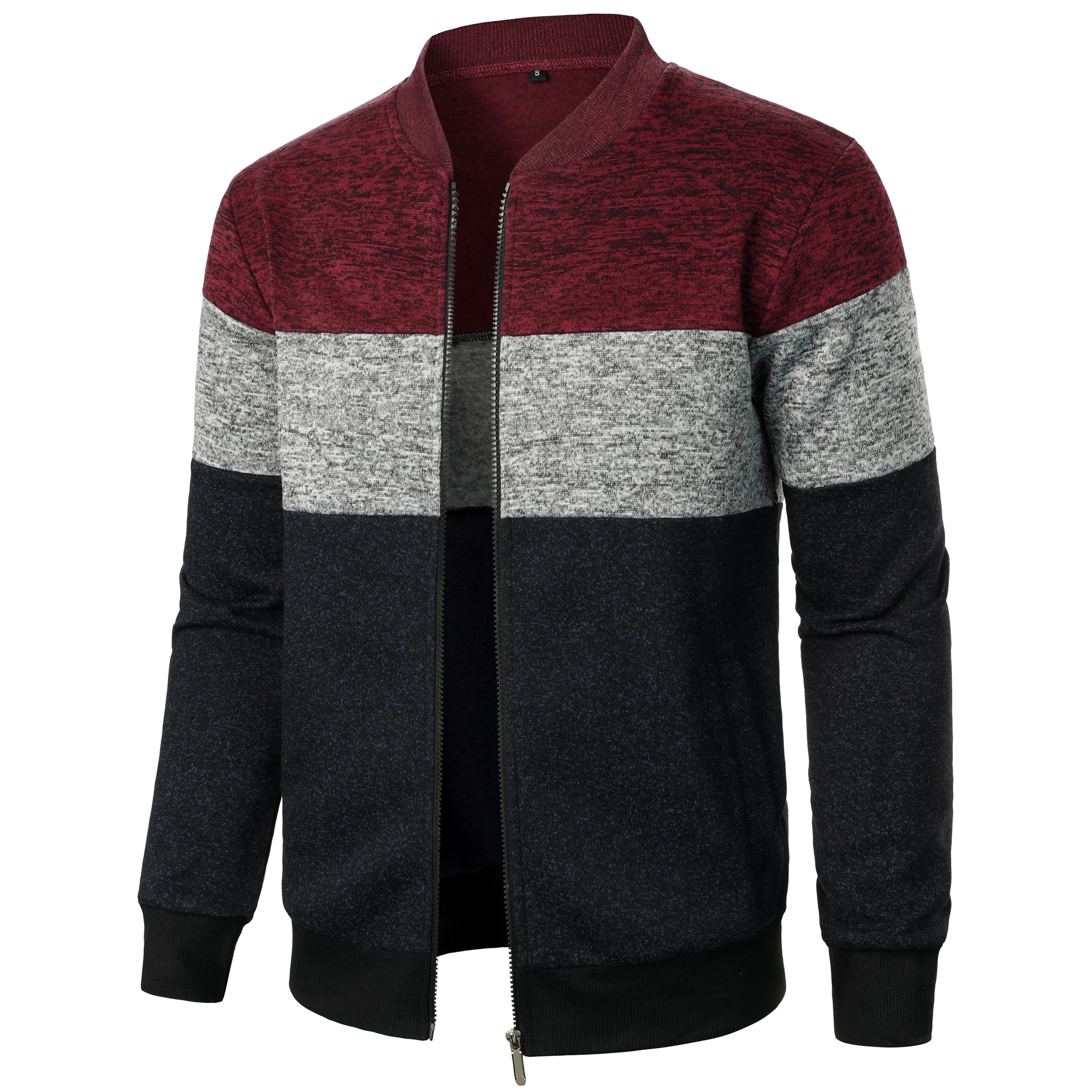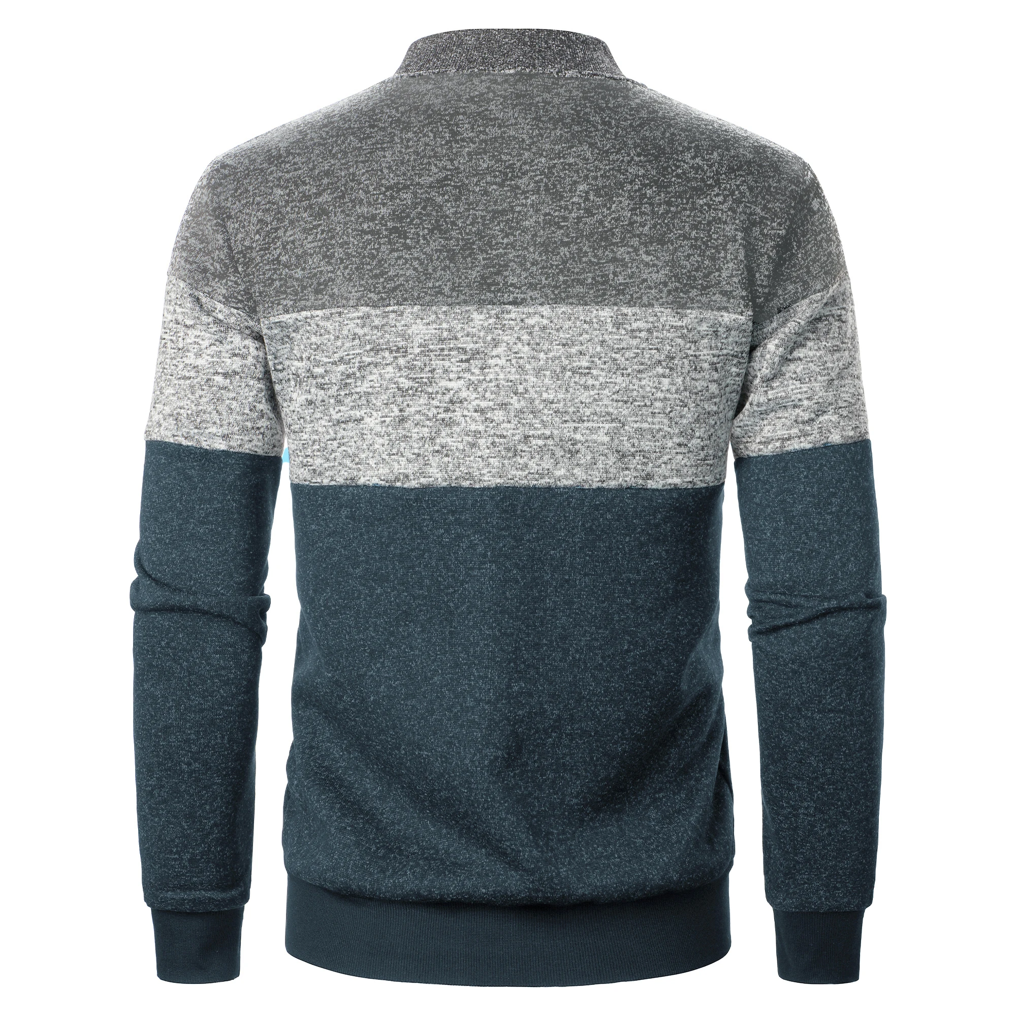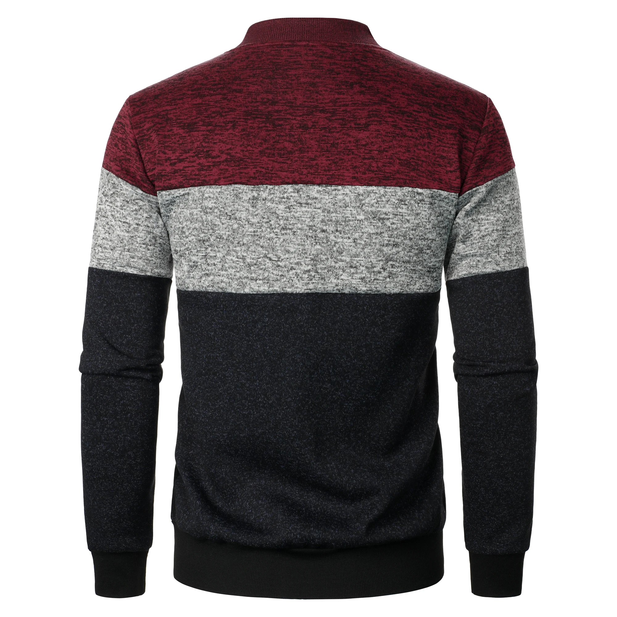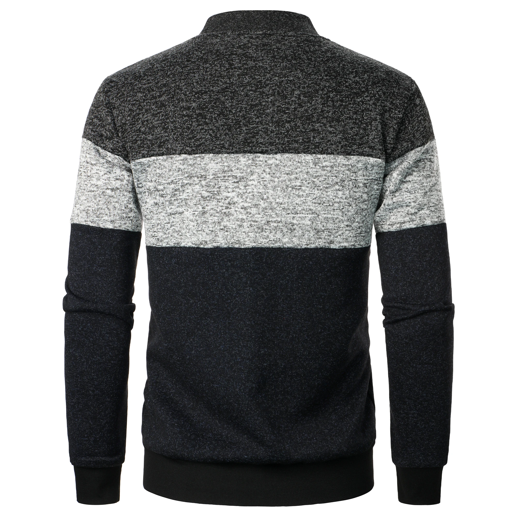 Autumn/winter men's stand-up collar striped check zipper knit top with fashion color matching