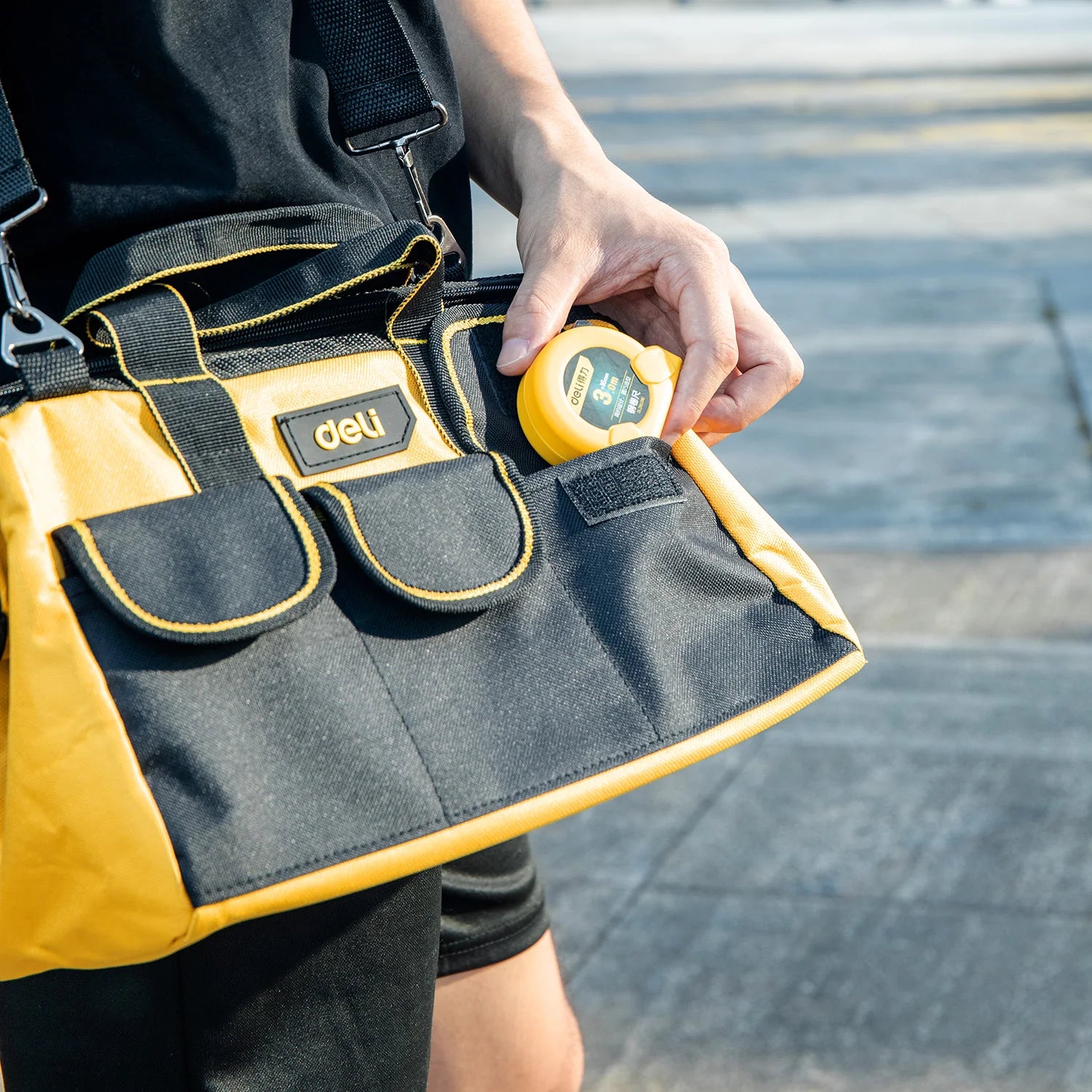 Deli 13in Yellow Tool Bag with Shoulder Strap, Durable Multi-Compartment Design, Portable and Convenient for Carrying Tools