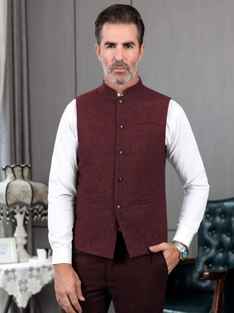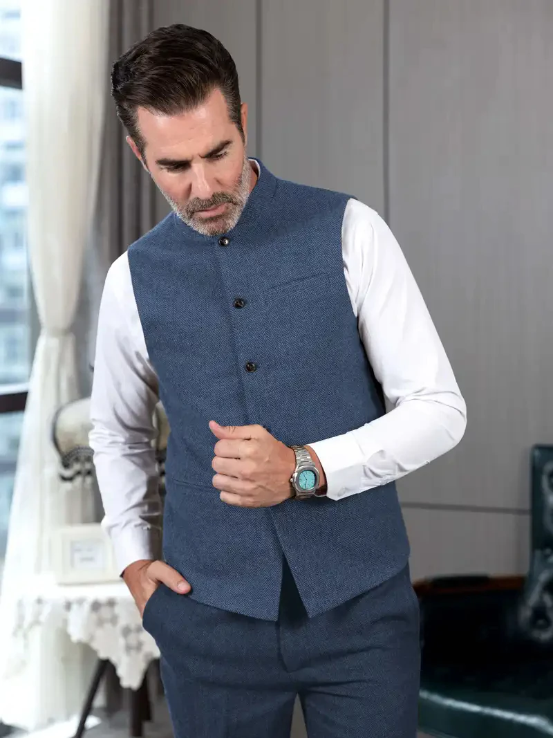 Elegant Slim Fit Tweed Wool Vests Suits Men's Suit Business Tweed High Collar Waistcoats Slim Fit Herringbone Vests