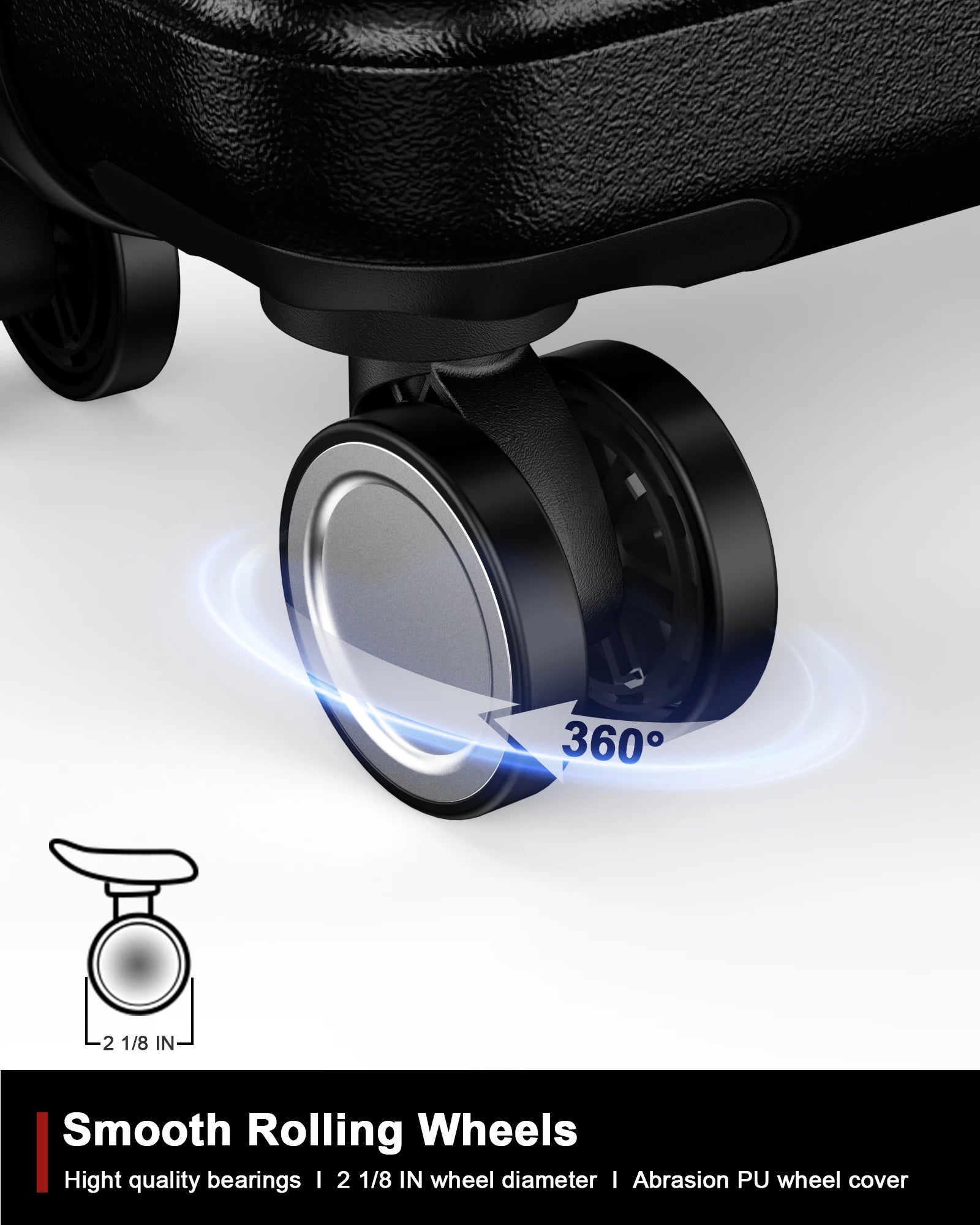 ▶Smooth 360° Spinner Wheels & Telescopic Handle◀ Equipped with 4 multi-directional double-spinner wheels, this luggage set glides effortlessly through airports, train stations, and busy streets. The upgraded wheels combine soft TPU and high-quality steel balls for enhanced durability and smooth movement. The adjustable telescopic handle ensures a comfortable grip for users of all heights, making travel stress-free.