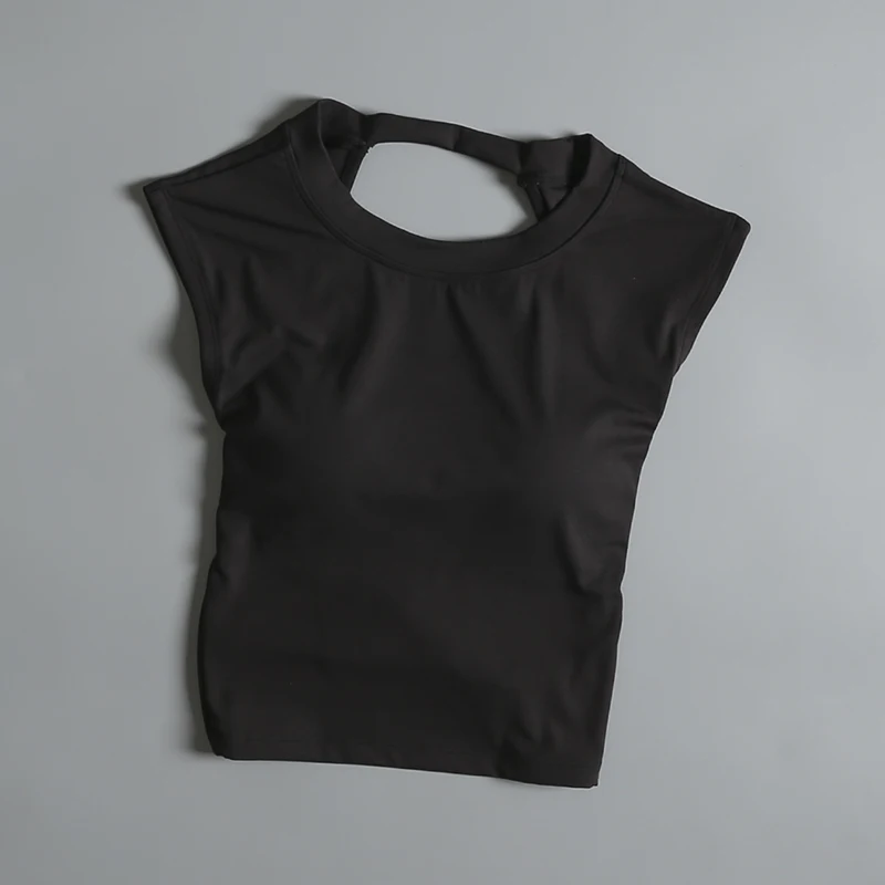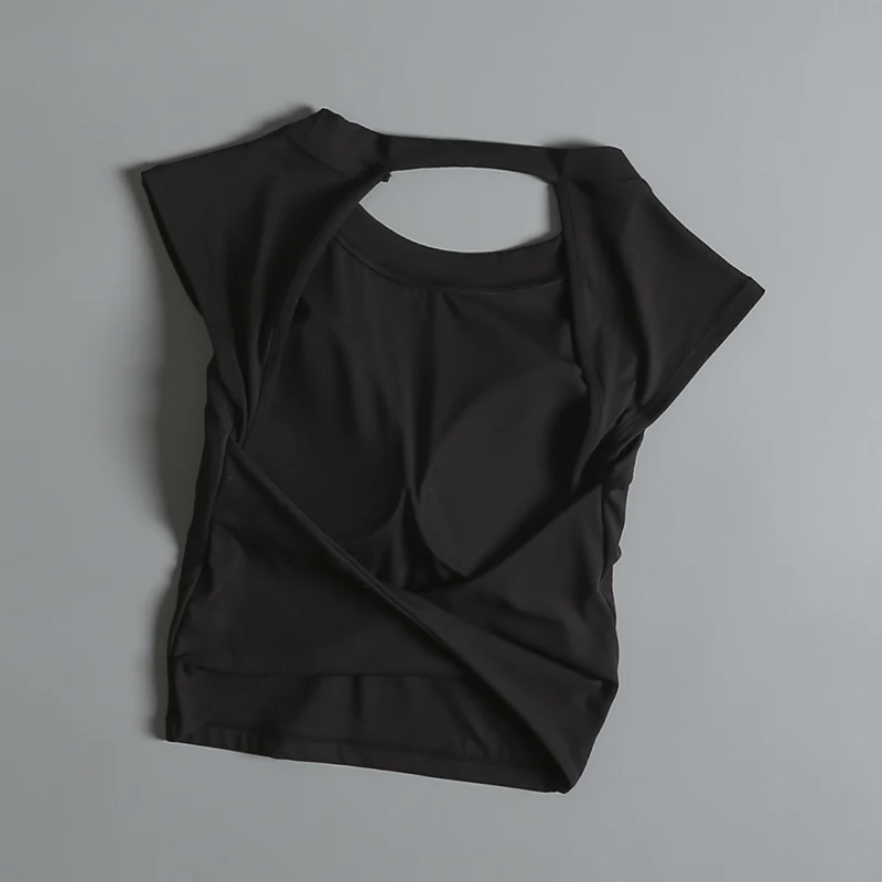 Sexy Short Backless Fixed Chest Pad Sports T-shirt Vest Women's Tight Fitting Quick Drying Slimming Yoga Suit Top Clothing