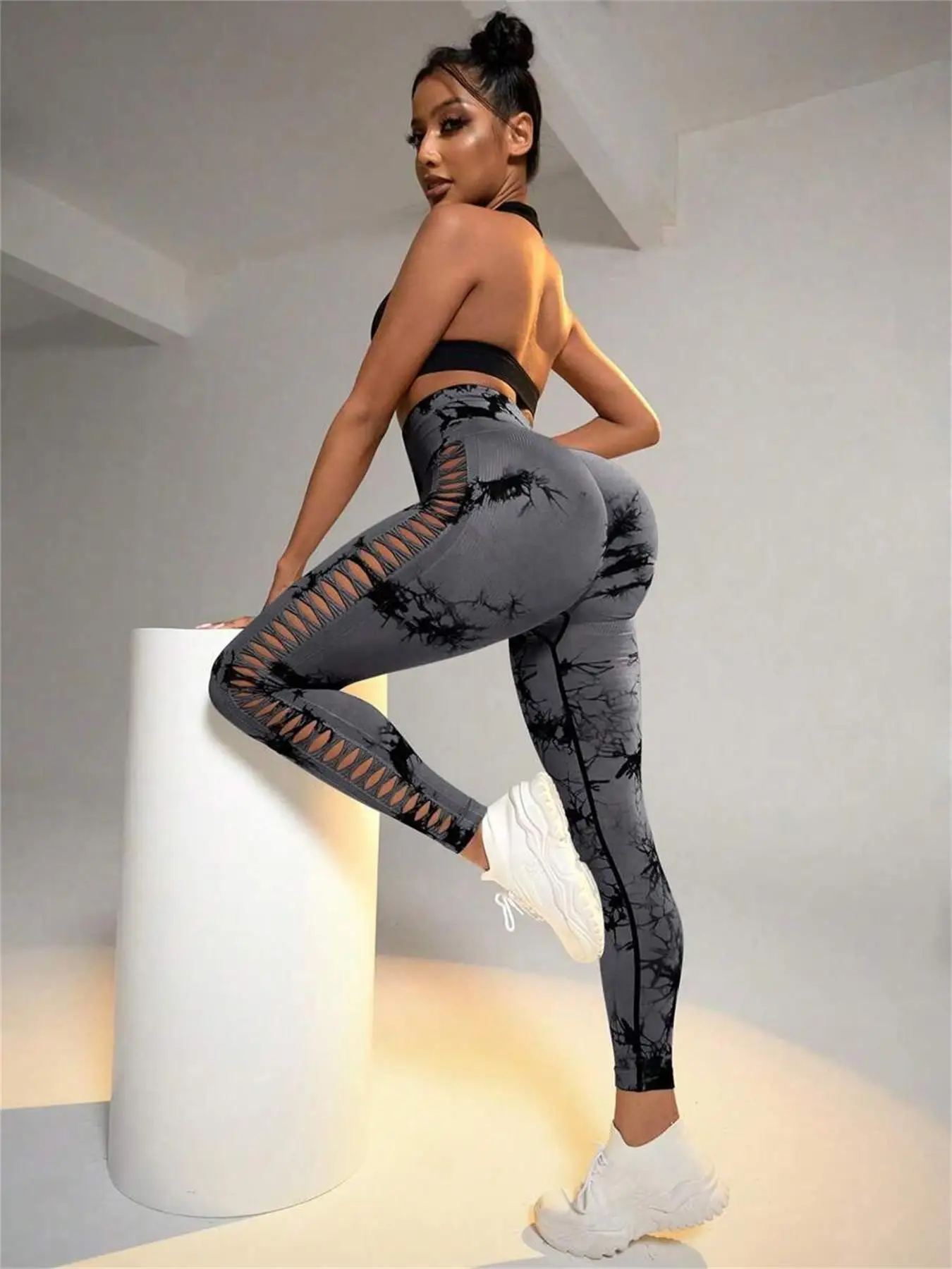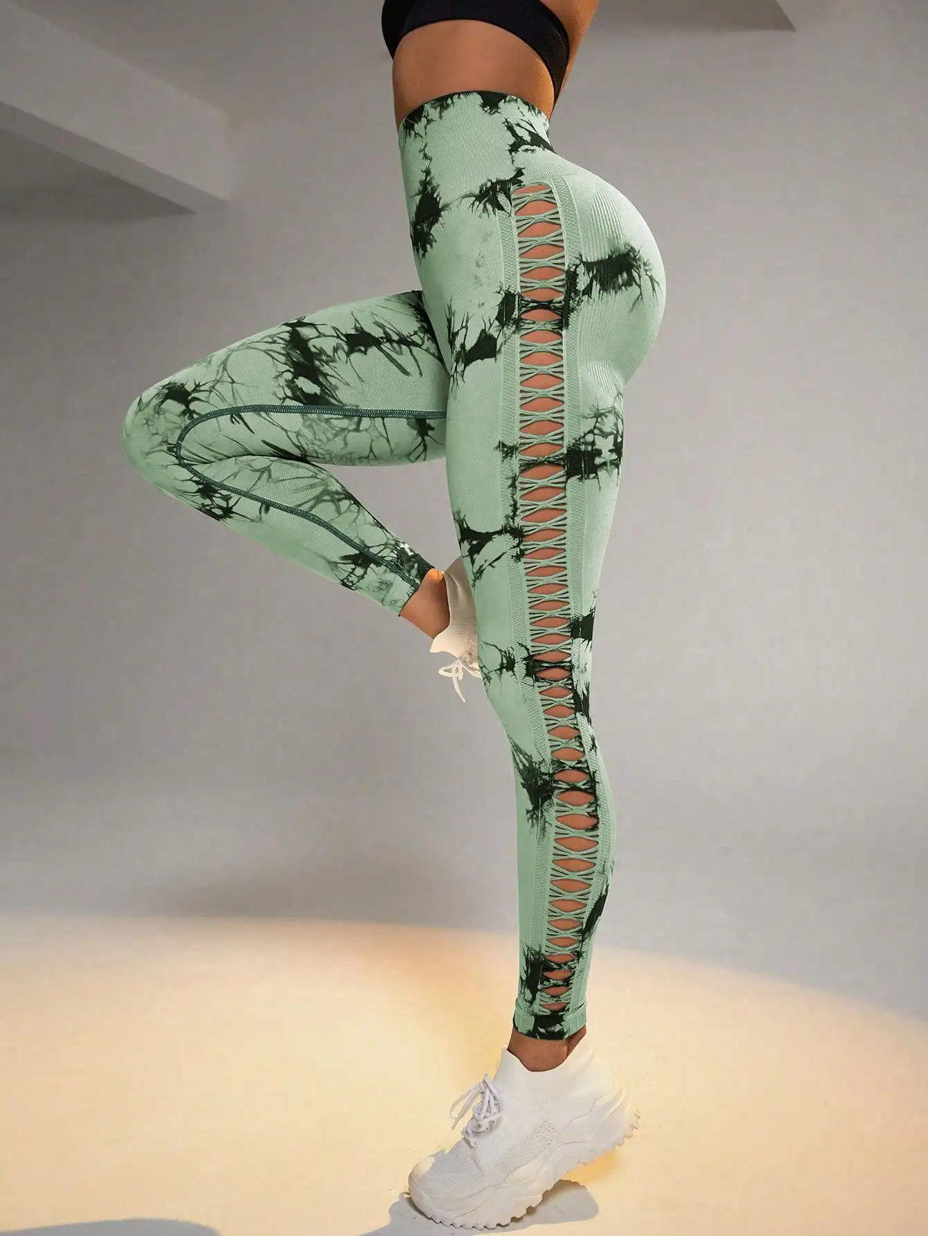 Tie Dye Seamless Leggings for Women High Waist Yoga Pants, Scrunch Butt Lifting Elastic Tights, Side mesh design